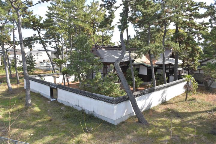 Takaishi Shrine can be seen from Takashinohama’s elevated platform