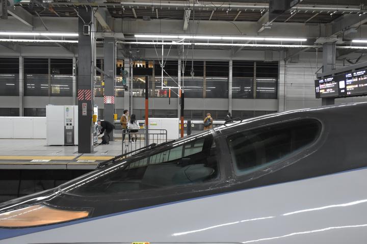 While waiting for my train on the Shinkansen platforms, I caught this 500 Series Shinkansen (right side) and a 700 Series in Hikari Rail Star livery. With Hikari Rail Star operations winding down, I suppose both of these are becoming rather rare. This was the only 500 Series I saw during my entire stay, and I really like its design, although it feels very similar to the German ICE 3, designed by the same person. I always thought of the 500 Series as derivative of the ICE 3, but it turns out the 500 Series is actually older.