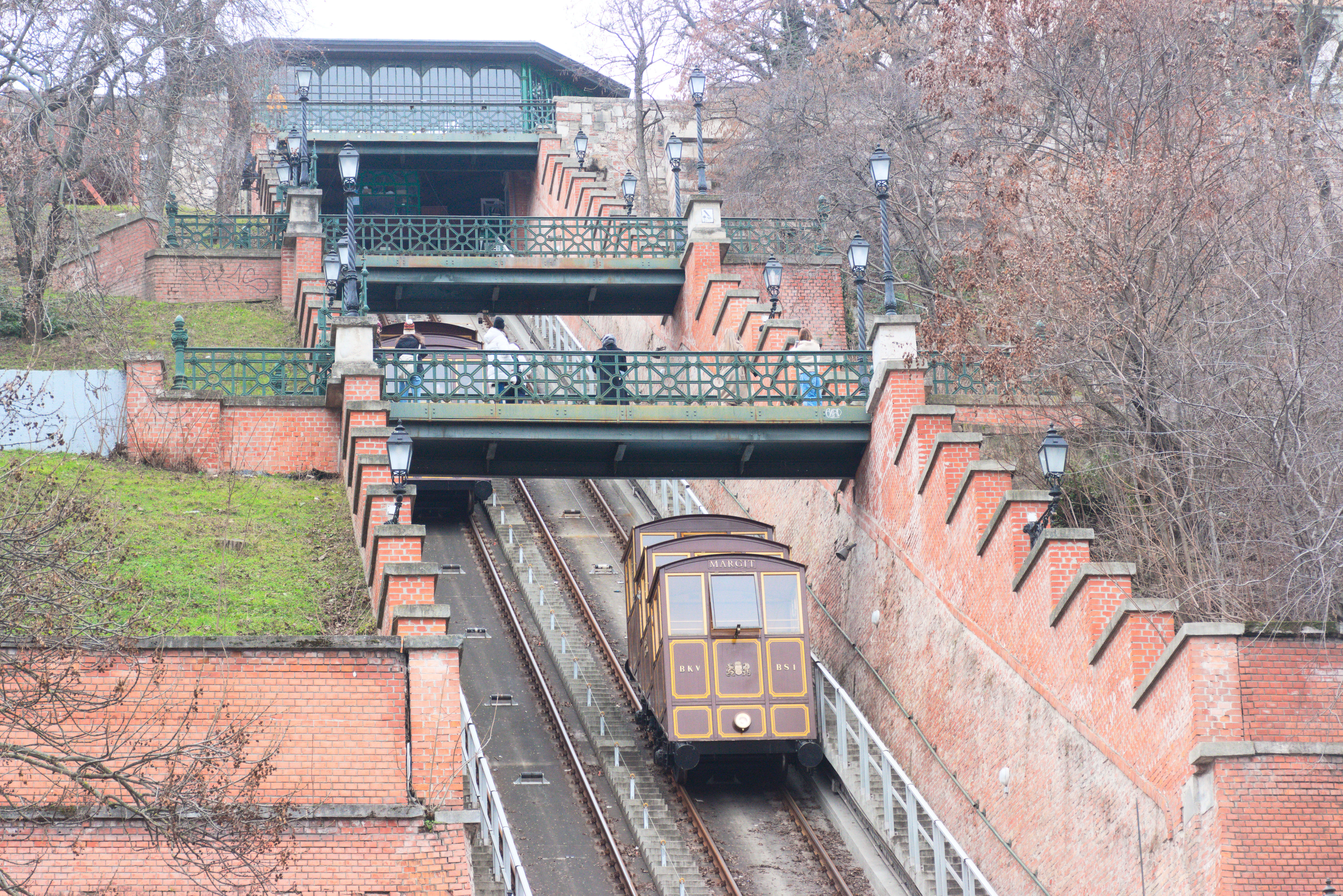 There's a funicular from the bank of the Danube to Budapest Castle. Interestingly, it does not use an Abt-style switch but is double-tracked for its entire length.