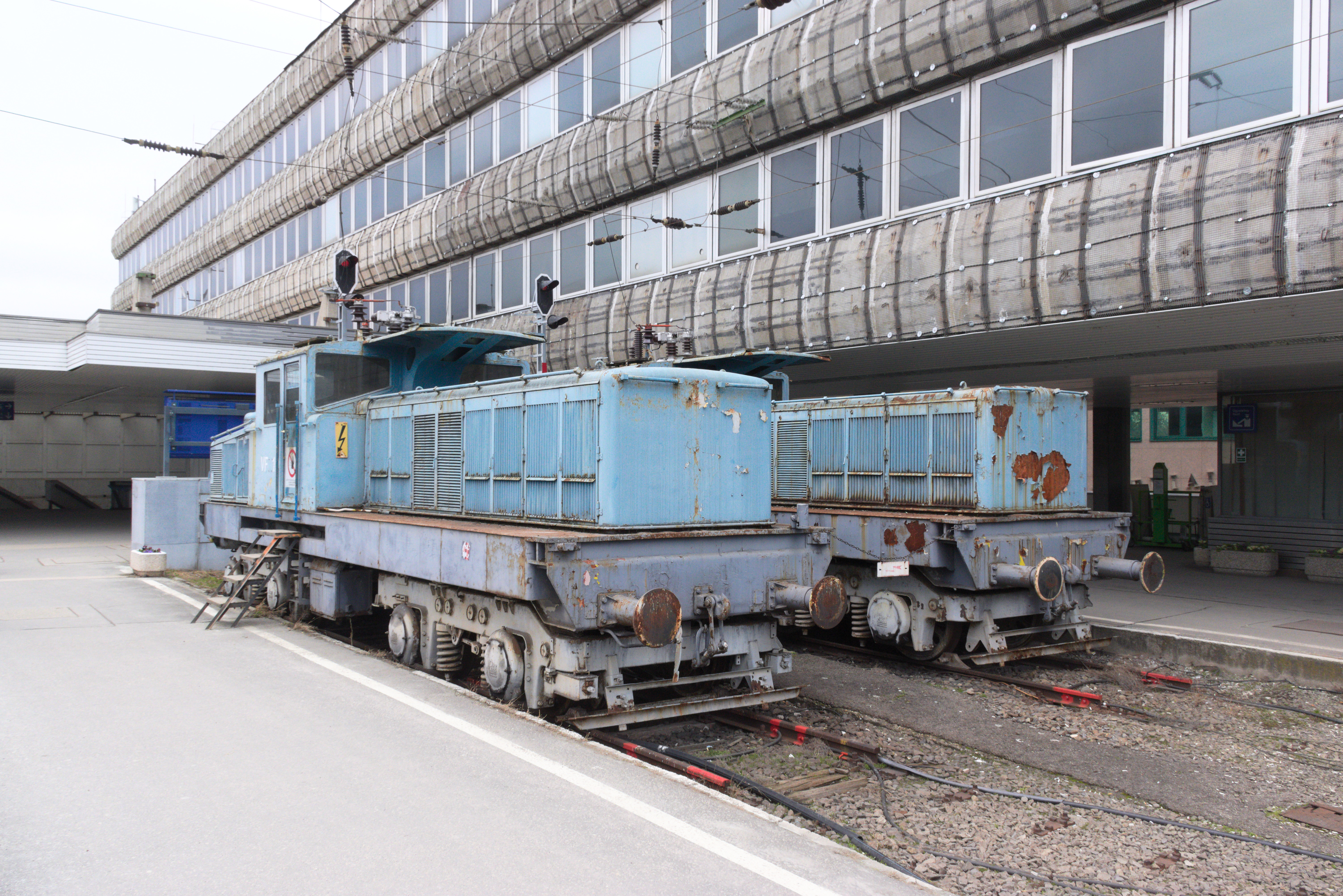 I assume that these two shunters are used to provide train heating. Their pantographs have been removed with a simple cable connecting them to the overhead wire.
