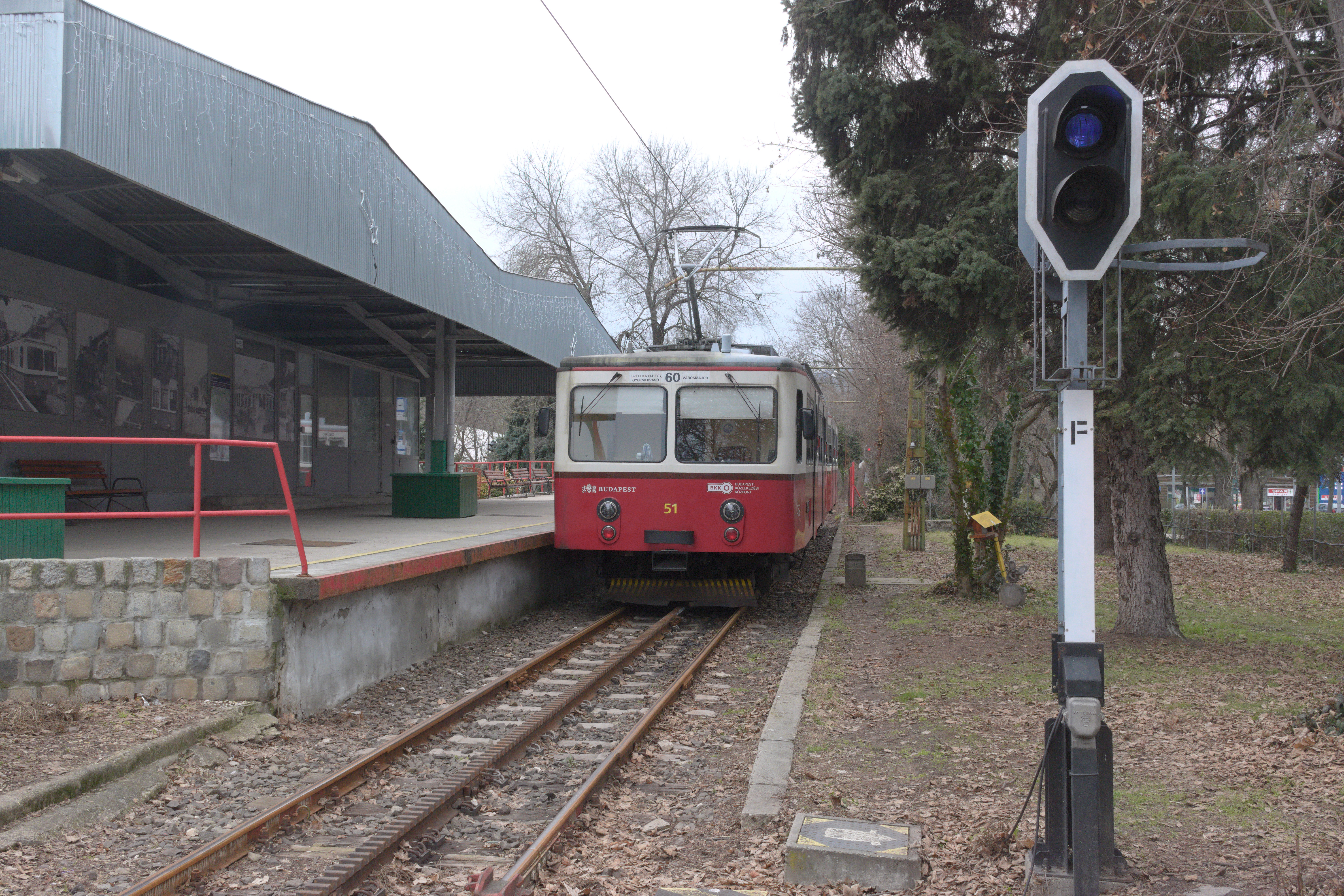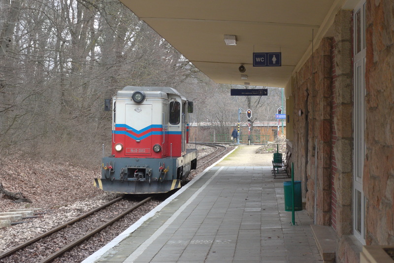 At each of the termini, the locomotive has to run around the train. This is Hűvösvölgy, the northern terminus. Instead of taking the train back, you can also use the tram from here to return directly to the city center.