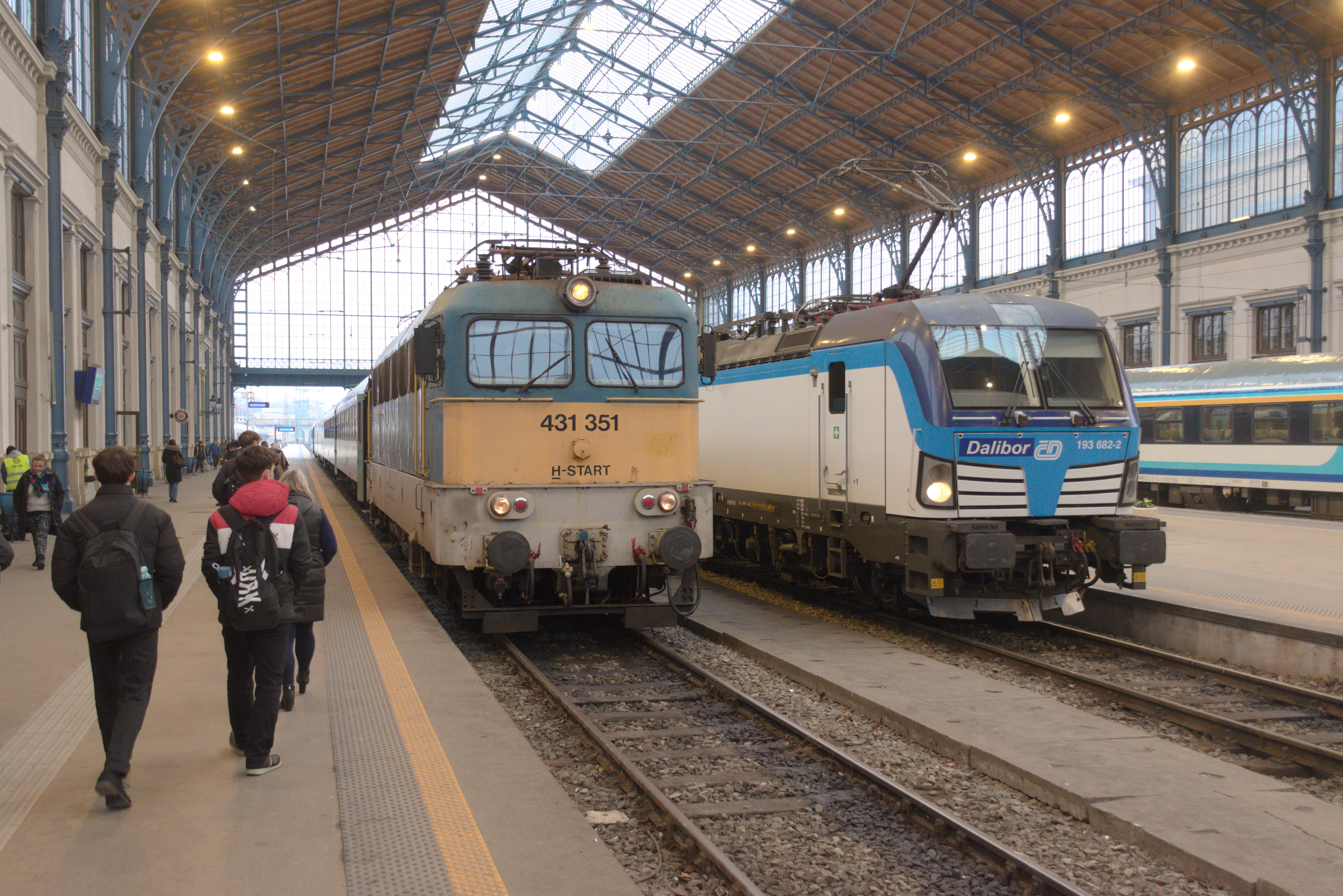 The V43 series was built by Hungarian manufacturer Ganz starting in 1963. They are still a common sight today. Seen here at Budapest-Nyugati next to a Czech Vectron on an international train.