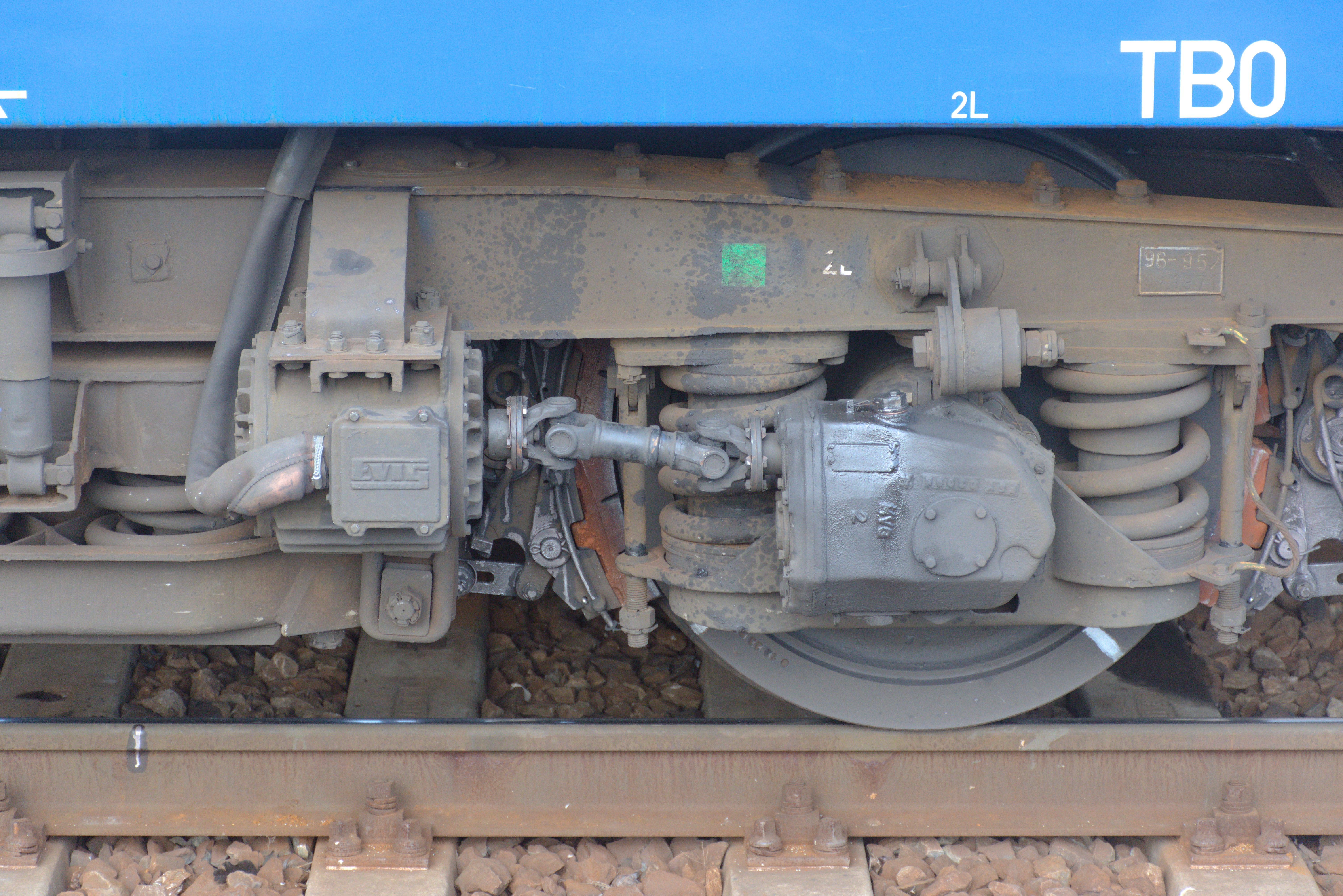 Axle generators are still a common sight in Hungary. They provide electricity for train lighting and heating in the absence of head-end power. To the left, on the axle, sits a gearbox, which is connected via a cardan shaft to the actual generator mounted on the bogie.
