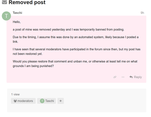 No response. Still possible he just overlooked it or was otherwise busy, so I reached out to the mod team once again: